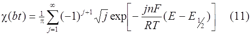 Решение (5) дает зависимость (bt) от bt при данном . Эта функция определяет форму вольтамперных кривых для обратимого процесса. bt связано с потенциалом
