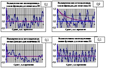 Рисунок 5.3.2 Автокорреляционные функции четырех величин Сравнивая временные реализации величин по их внешнему виду и их статистики по численным значениям, видно следующее: