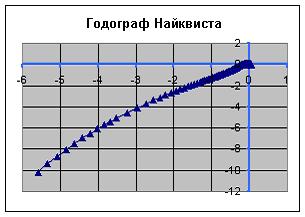Анализируя графики, делаем вывод, что система наиболее устойчива при значениях коэффициентов Кр = 2,1 и KI=0,7 (т.е. третий график). Проделаем то же самое для трех точек, выбранных на графике области работы САУ, при S=1 и ' = 0,066. Для нашей системы типа II класса В значения коэффициентов: K'P - от 10 до 12, K'I - от 2 до 4. В этих пределах система не устойчива (ниже приведен годограф Найквиста при значениях K'P =10, K'I = 2).